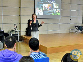 2012年10月10日,美國福爾曼大學(xué)亞洲區(qū)招生顧問Martha Kimmel女士應(yīng)邀到我校國際項目部禮堂為高中生做大學(xué)升學(xué)現(xiàn)場指導(dǎo)。這是Kimmel女士第三次來校為我校高中學(xué)生做招生專題演講。 Kimmel女士向我校學(xué)生介紹了如何申請福爾曼大學(xué)以及與該大學(xué)相關(guān)的專業(yè)選擇問題。同時,她還問及學(xué)生們的興趣與愛好。通過Kimmel女士對福爾曼大學(xué)的介紹,同學(xué)們受益匪淺。
