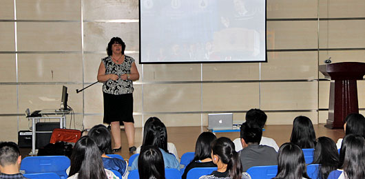 加拿大英屬哥倫比亞大學(xué)招生官Dayna Li以及她的同事于2014年4月14日來訪美視項目部。他們?yōu)閲H項目部以及中美英才班的高中生做了精彩的招生宣講。