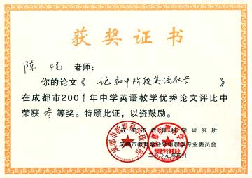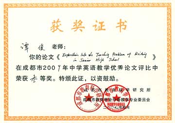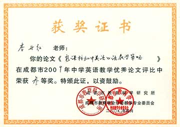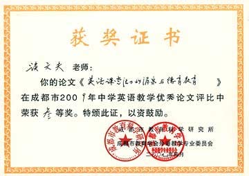 2009年中學(xué)英語(yǔ)教學(xué)優(yōu)秀論文評(píng)獲獎(jiǎng)教師