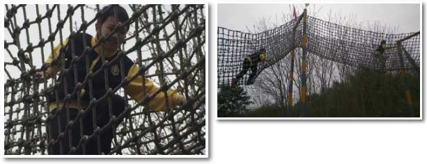 一根根繩子盤根錯節(jié)地系在一起,織成了一張張大網(wǎng),如同連綿起伏的高山,我們心想:完了完了,以前從沒玩過,我怎么可能爬得上去?萬一在同學(xué)面前出糗了,怎么辦?