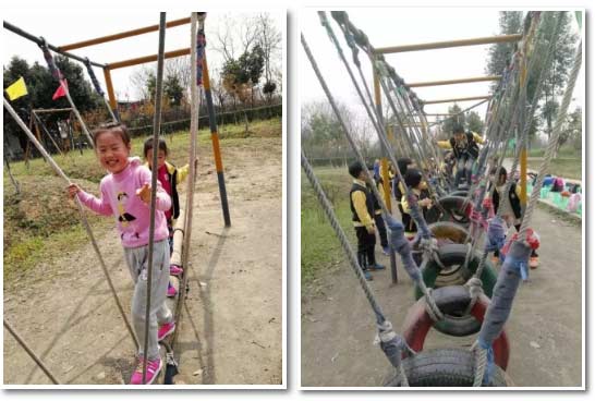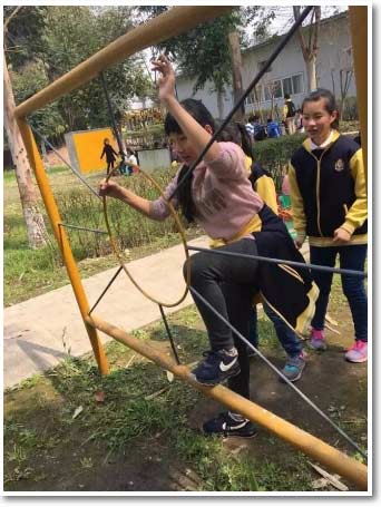 索橋運水中,看看哪個組運的又多又快!瞧,我們?nèi)菀讍幔?/span>