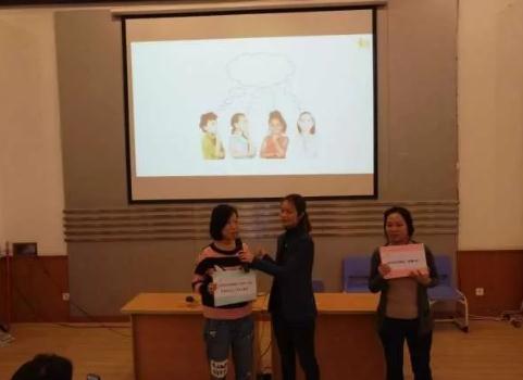 一陣議論過后,林老師邀請(qǐng)兩位家長上臺(tái)配合她做一個(gè)小小的情景再現(xiàn)。