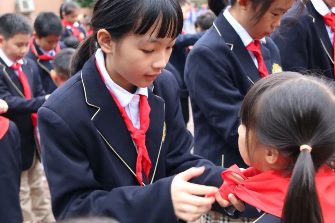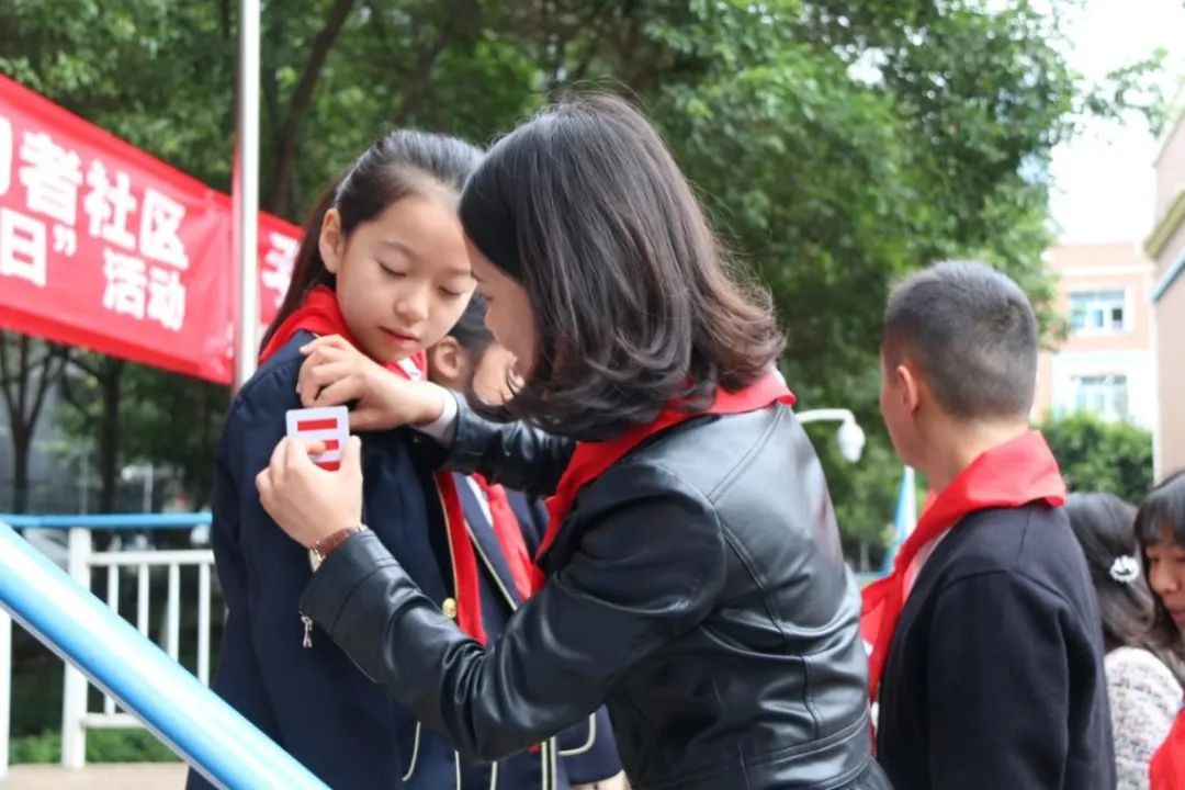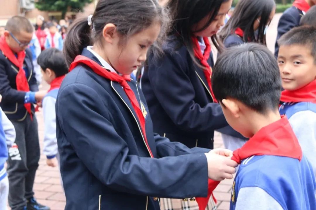 新時代,我們少先隊需要新的血液,傳承著黨的紅色基因的新隊員。在老隊員們的見證下,我們舉行了一年級新一批隊員的入隊儀式。五年級老隊員為他們帶上少先隊的象征——紅領(lǐng)巾,并為他們送上了親手制作的賀卡以資鼓勵。一年級的新隊員們也在隊旗下,鄭重宣誓,牢記黨的教導(dǎo),從小學(xué)習(xí)做人、從小學(xué)習(xí)立志、從小學(xué)習(xí)創(chuàng)造,立志向、修品行、練本領(lǐng),為實現(xiàn)中華民族偉大復(fù)興的中國夢時刻準(zhǔn)備著。