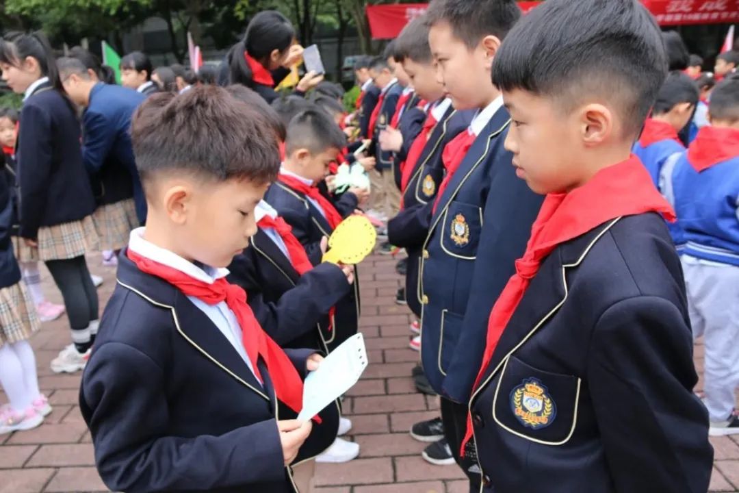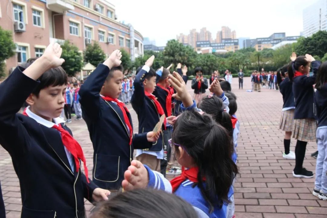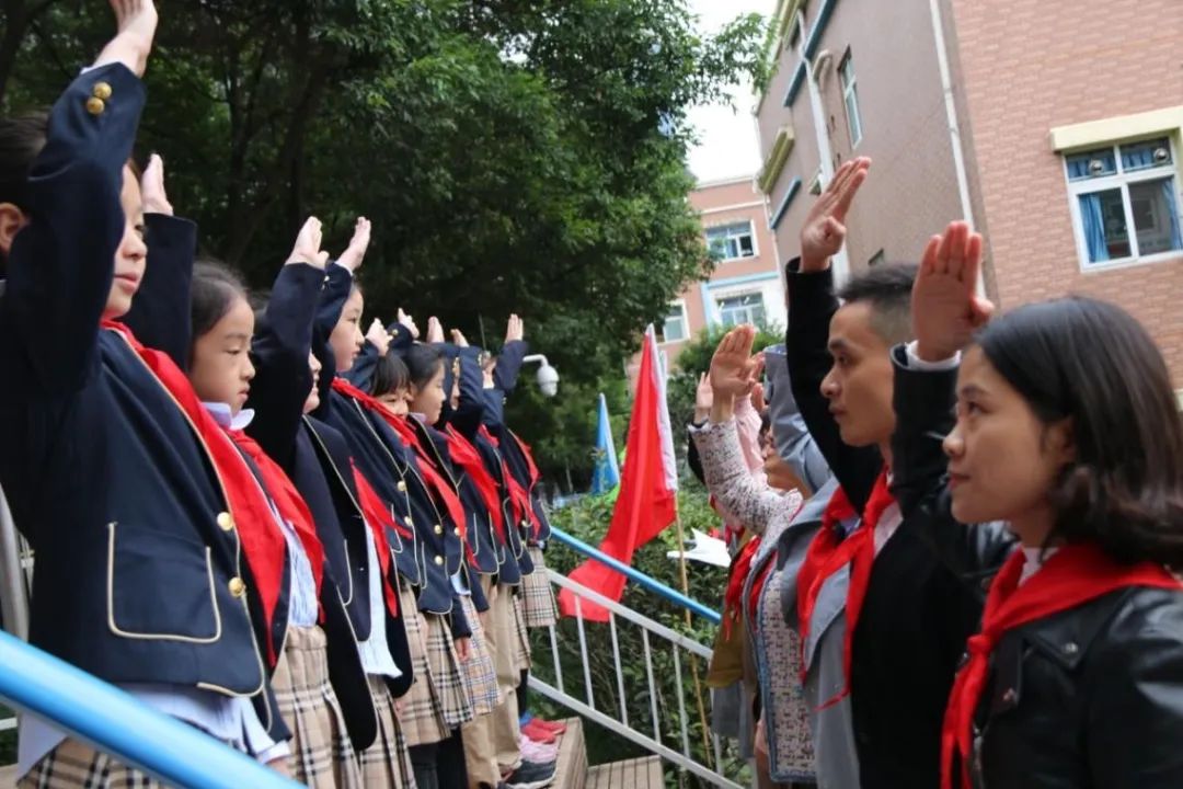 活動中,隊員們一同回顧了少先隊的光榮歷史,接受少先隊基本知識和標(biāo)志禮儀教育。首先進行了升國旗和出隊旗儀式。