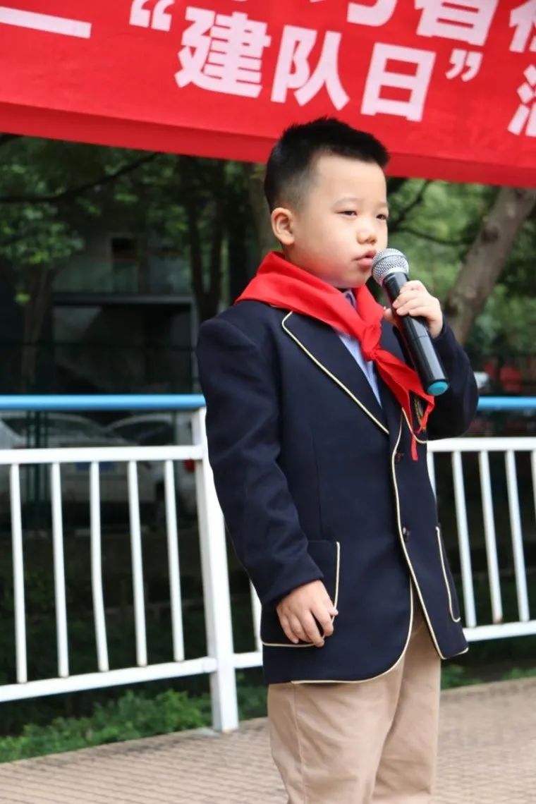 一年級新入隊隊員張景棠同學(xué),作為新隊員代表,發(fā)表了稚嫩卻誠摯的講話,表達了對少先隊的認識,對紅領(lǐng)巾的認識;并且表示要好好學(xué)習(xí)、熱愛祖國、尊敬老師,團結(jié)同學(xué),做一名合格的少先隊隊員。