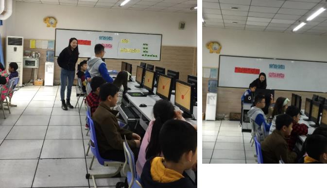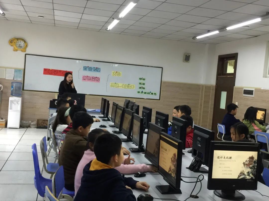 在信息課堂的開放課上,學(xué)生們利用scratch編程,幫助李白為汪倫設(shè)計(jì)了電子版的書信。