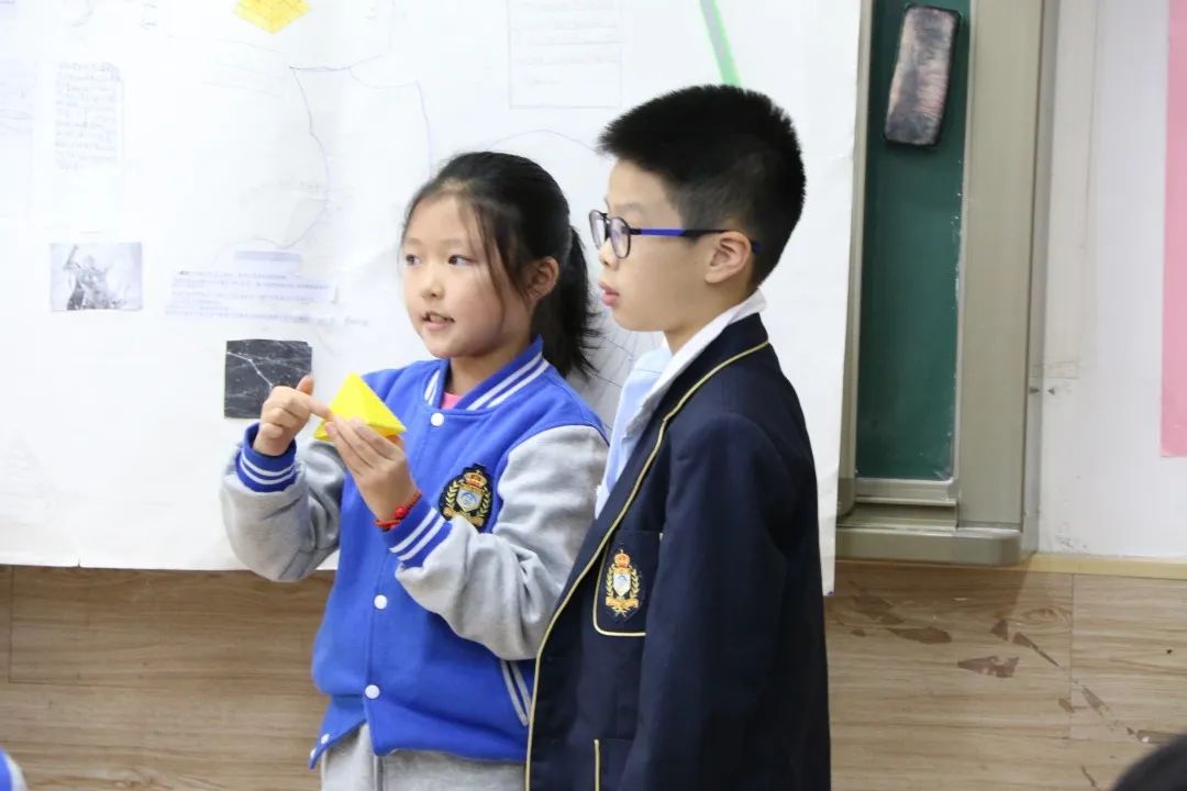 最終他們將探究成果聚焦在成果展示中,小組協(xié)作完成探究過程,并以海報(bào)的形式呈現(xiàn)。通過自發(fā)制作模型、精美的幻燈片等形式諾諾大方地展示自己的探究成果,為我們呈現(xiàn)了一堂別開生面的精彩展示!