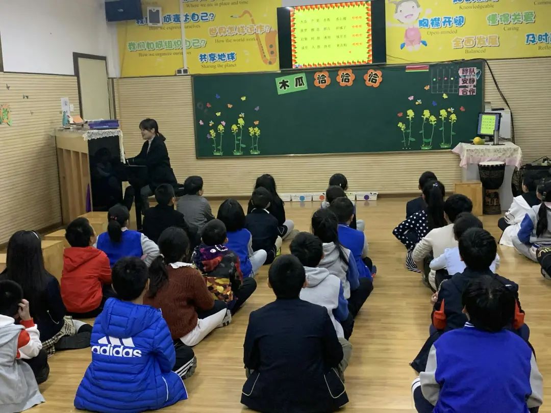 在音樂課堂的開放課上,孩子們學(xué)習(xí)了一首賣調(diào)歌曲《木瓜恰恰恰》,在聽、唱、奏、演等形式中積極主動(dòng)的學(xué)習(xí),并通過小組合作,用不同的方式來感受賣瓜人是如何叫賣賣木瓜的。