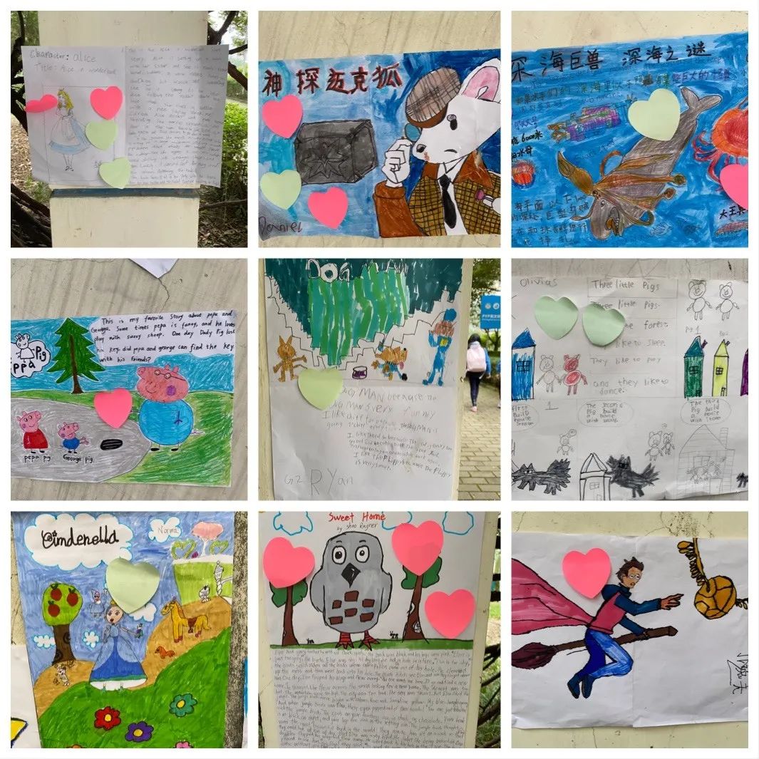 另一個精彩的活動是藝術長廊漫步-我最喜歡的書中角色海報展。滿懷自豪的帶上“我愛閱讀”的閱讀周紀念徽章,同學們漫步長廊,欣賞彼此的海報,哇,內容是五花八門,形式是各種各樣,有的孩子還穿上了最喜歡的書中人物的服裝,直教人眼花繚亂。