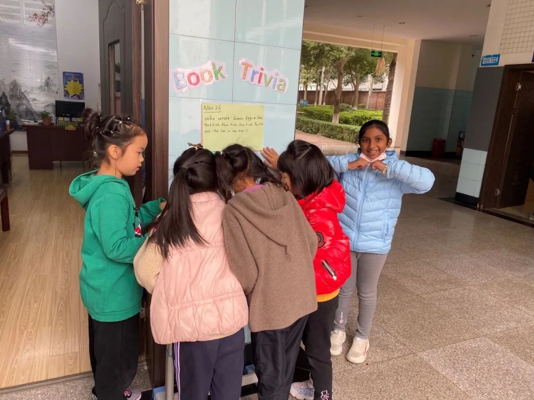 緊接著,老師們鼓勵學生們去完成每日讀書探究任務。這些任務每天都貼在一樓辦公室外面,每天的任務都不一樣:比如周一采訪老師最喜歡的書籍名稱,周二找出“誰去了霍格華茲學校?” 周三去了解三位你的同學或者朋友最喜歡的書; 周四回答誰寫了“綠雞蛋和火腿”,“紅魚,藍魚,一條魚,兩條魚”和“戴帽子的貓”?同學們興高采烈,也沒人抱怨無聊,更沒人抱怨麻煩。參與活動的同學為各自所在的聯(lián)盟積分,為集體爭光的想法讓他們樂此不疲。