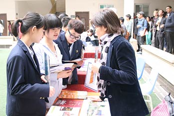 2013年3月12日上午,22所美國大學的招生官員應邀到我校國際項目部開展大學咨詢會。我校國際項目部高中學生以及來自美視中美英才班、成都國際學校、樂盟國際學校的同學參加了本次大學咨詢會。同學們與招生官員面對面交談并問了許多他們感興趣的問題。我們相信,通過與美國大學代表的交談,同學們對這些大學有了進一步的了解。