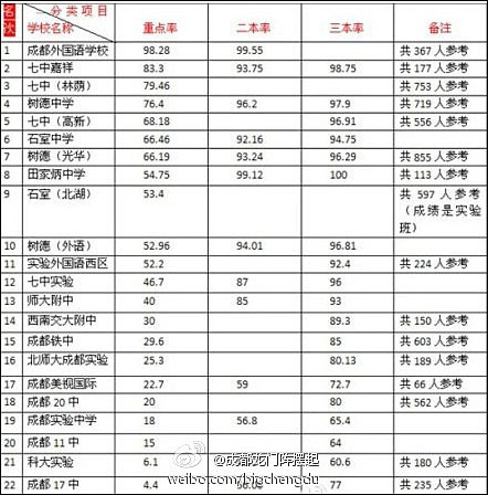 熱烈祝賀我校高考上線率居成都市第17位,成都市共有各級(jí)高中180余所,其中四七九集團(tuán)學(xué)校15所,成外集團(tuán)學(xué)校3所。