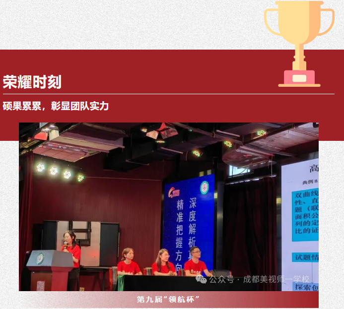 此次在成都高新區(qū)“領航杯”團體賽中的輝煌戰(zhàn)績,是美視師一高中教研之路上的一個閃亮坐標,但絕不是終點。它是對我們過去努力的肯定,更是對未來發(fā)展的鞭策。