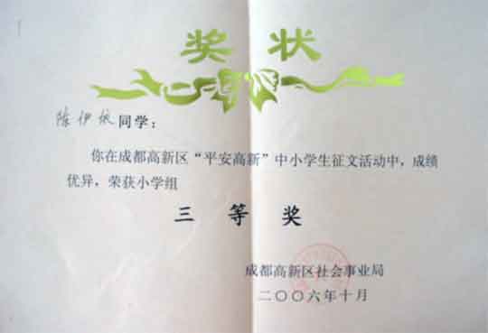 三等獎(jiǎng):鄧穎(高2009級(jí)2班) 陳伊依(小學(xué))
