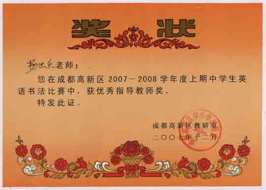 成都高新區(qū)2007年英語(yǔ)書(shū)法比賽獲獎(jiǎng)名單。