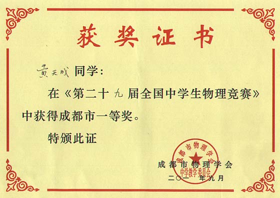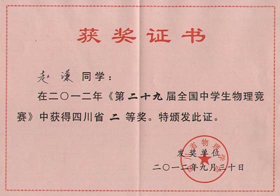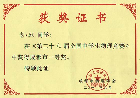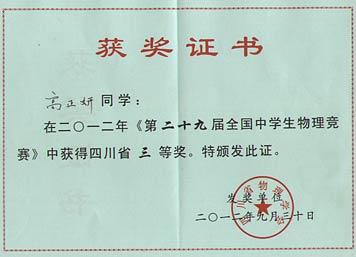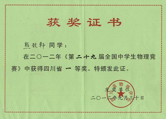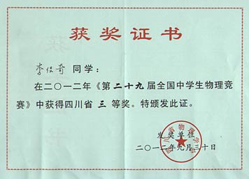 美視學(xué)子在第29屆全國(guó)中學(xué)生物理競(jìng)賽中獲獎(jiǎng)