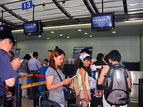 我校第一批參加赴美學(xué)習(xí)考察的教師準(zhǔn)備登機(jī)