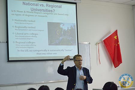 加利福尼亞州路德大學(xué)創(chuàng)建于1959年,是一所私立綜合性大學(xué)。該校是有500年歷史路德教會(huì)傳統(tǒng)高等教育的一部分,學(xué)校提供了36個(gè)主修專(zhuān)業(yè)和28個(gè)輔修專(zhuān)業(yè),除此之外,也有特定領(lǐng)域的職業(yè)準(zhǔn)備項(xiàng)目。在本次招生說(shuō)明會(huì)上,該校副校長(zhǎng)Dr. Thomas Hoener就學(xué)生關(guān)心的專(zhuān)業(yè),地理位置,排名等問(wèn)題進(jìn)行了一一的解釋說(shuō)明。Dr. Thomas Hoener特別強(qiáng)調(diào)了該校在學(xué)術(shù)方面的一些優(yōu)勢(shì),比如小班教學(xué)(1:15的師生比例);各專(zhuān)業(yè)教師在學(xué)術(shù)方面的造詣,以及專(zhuān)業(yè)教師的師資水平等。會(huì)后,Dr. Thomas Hoener與一些同學(xué)進(jìn)行了個(gè)別交流,掃清了學(xué)生對(duì)美國(guó)大學(xué)申請(qǐng)的一些疑問(wèn)。