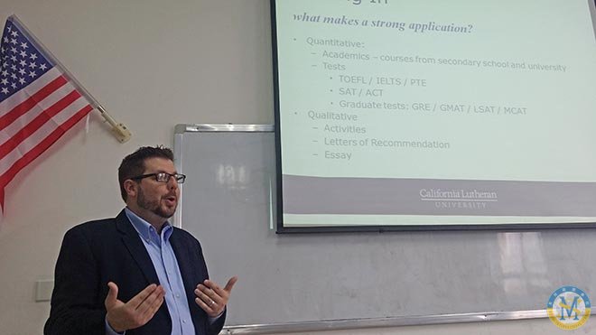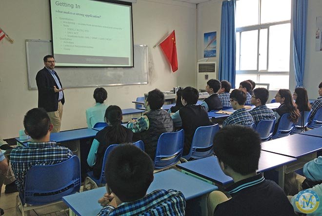 2015年4月21日早上10點,來自加州路德大學的校方代表來訪中美英才班。同時,給中美英才班高一同學講述如何去選擇一所適合自己的大學,怎樣去讓自己的申請更為突出,與此同時,也讓同學們對加州路德大學進行了詳細了解。