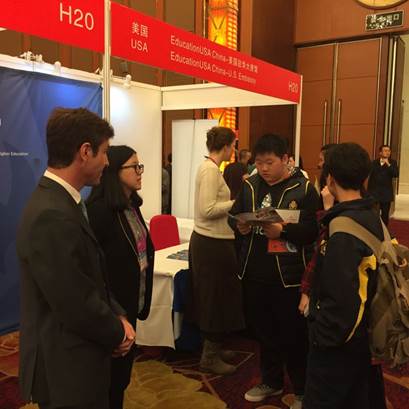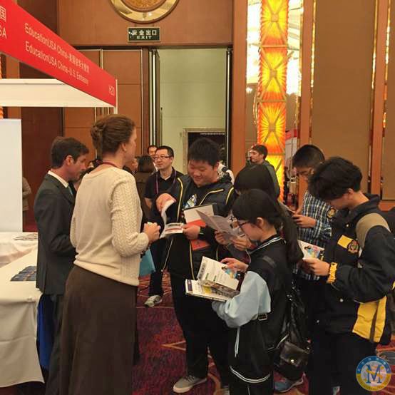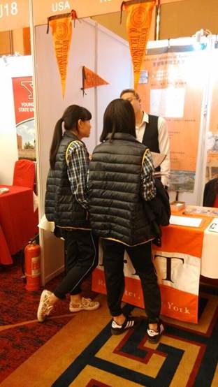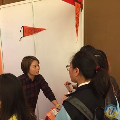 中美英才班的同學(xué)們與參展大學(xué)積極交流,各參展大學(xué)為同學(xué)們解答他們最為關(guān)心的問(wèn)題。