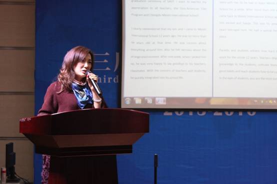 鐘山雨的媽媽作為學(xué)生家長代表與大家分享了初來美視學(xué)校的心情以及看到其他同學(xué)們和自己的孩子在這里一點(diǎn)一滴的成長而感到欣慰。她表達(dá)了對所有畢業(yè)生的祝愿,也表達(dá)了作為家長對所有老師以及對美視學(xué)校的感謝!