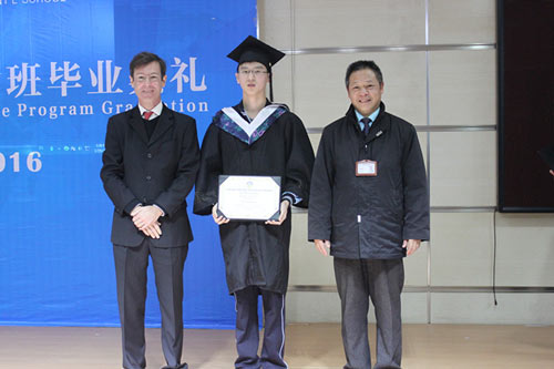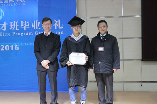 中美英才班主任Dan Plaut先生和美視中學(xué)部校長徐德雄先生為2016級中美英才班畢業(yè)生們頒發(fā)結(jié)業(yè)證書