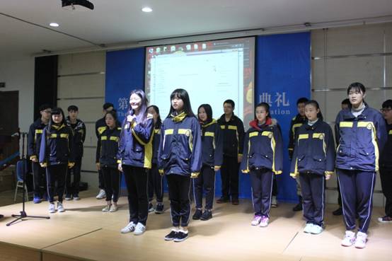 高一(1)班的同學(xué)們?yōu)榇蠹耀I(xiàn)上了一首動聽的歌曲,他們對學(xué)長學(xué)姐們的美好祝愿此時都化作美妙動聽的音符,縈繞整個禮堂。