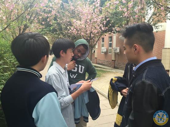 在中美英才班外教們的帶領(lǐng)下,一場時間與智慧的考驗賽拉開帷幕。 當(dāng)開始的號令發(fā)出,同學(xué)們隨即與時間展開了追逐賽,因為在越短的時間內(nèi)找到列表上所要求的東西越多,離勝利就越近。看著同學(xué)們忙碌的身影,匆忙的腳步,他們無不享受著這場趣味游戲所帶來的快感。在繁忙的學(xué)業(yè)中,此刻難得的放松機會,同學(xué)們又怎么會錯過呢?