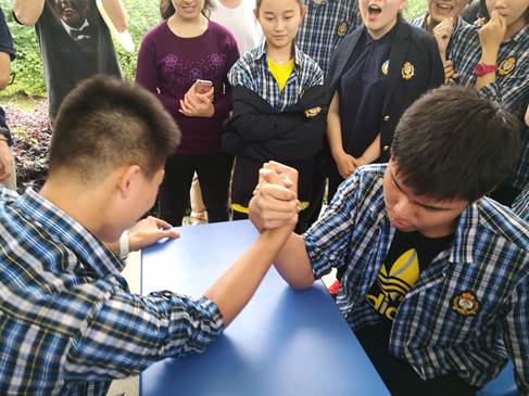 上周,中美英才班第二屆校園文化主題活動如期開展。作為全體中美英才班同學(xué)參與的盛會,同學(xué)們以飽滿的熱情參與每一場活動。CS游戲、燒烤、拔河、扳手腕、飛盤游戲、水球大戰(zhàn)等一系列活動為同學(xué)們忙碌而單調(diào)的學(xué)習(xí)生活,增添一抹亮麗的彩色。